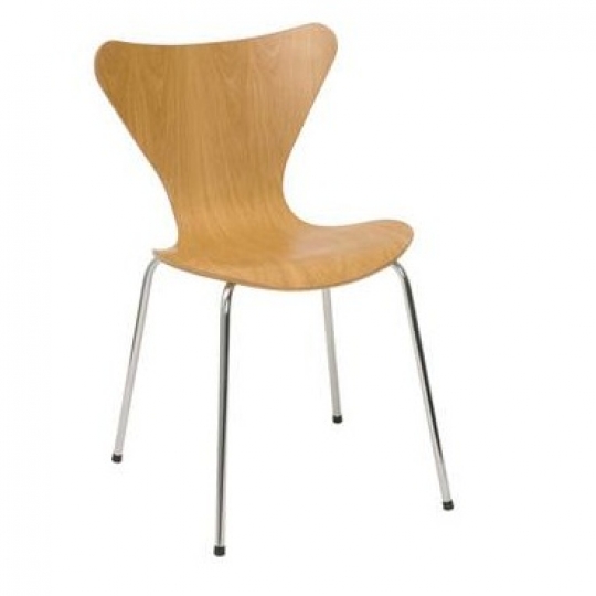 Silla Jacobsen La silla Butterfly de Jacobsen. Estructura de base en caño cromado y monocasco (asiento - respaldo) de multilaminado de madera curvada. Apilable. Colores: Lustre Natural- Guatambu - Paraiso Wengue - laqueadas varios colores