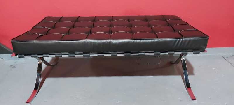 Diseñador Arq. Ludwig Mies Van Der Rohe (1828) Obra clasica del diseño mobiliario. Icono del diseño modernista. Armonicas proporciones y lineas elegantes Estructura de acero tipo planchuela cromada Tapizado en Cuero de 1° calidad, capitone.